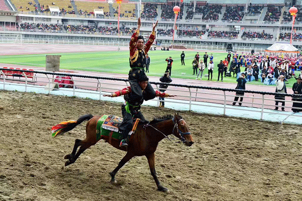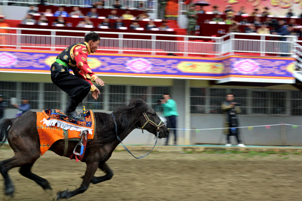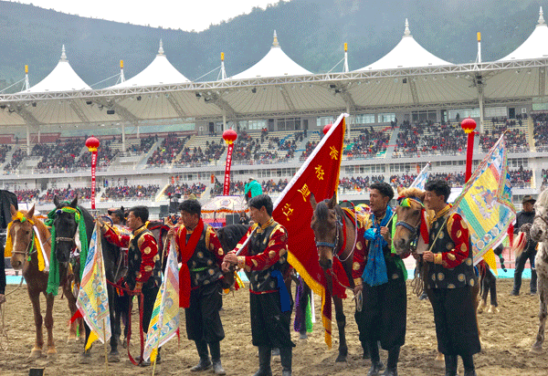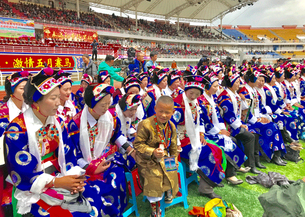藏族儿女身着节日盛装欢庆赛马节开幕