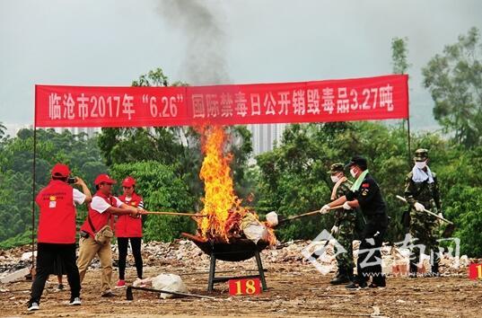 6月22日上午,临沧市举行2017年公开销毁毒品活动暨“无毒青春、健康生活”禁毒宣传活动,公开销毁近年缴获的毒品3.27吨。