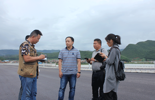 泸西县交通运输局唐浩然向媒体介绍泸弥高速公路建设情况