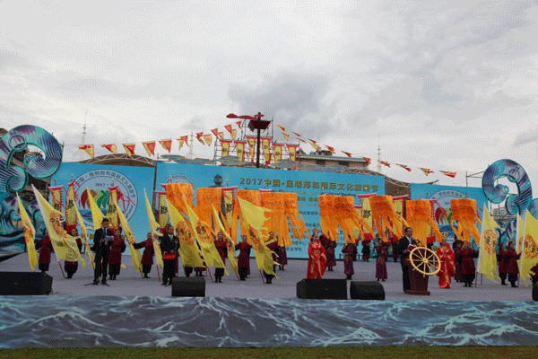 7月11日是第十三个中国航海日。2017中国•昆明郑和国际文化旅游节在郑和故里晋宁区隆重举办。上海市、云南省、晋宁区郑和研究会相关负责人,郑和后裔,知名艺术家,省、市、县(区)级相关领导,文化人士,企业事业单位代表等参加了开幕式。