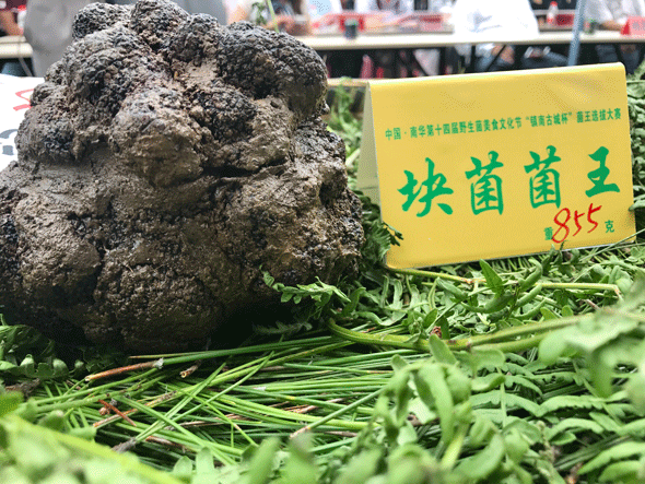 下午5点,南华野生美食文化节“镇南古城杯”菌王选拔大赛落下帷幕。松茸以845克重量荣获菌王,块菌(黑松露)以855克重量荣获菌王,牛肝菌以1130克获得菌王,虎掌菌1935克获得菌王,香根菌以700克7重量获得菌王,杉老苞1380克获得菌王,云芝菌菌王9030克, 灵芝菌菌王8310克,干巴菌菌王710克,鸡枞菌725克荣获菌王。本次菌王选拔大赛选拔菌王标准为重量和新鲜程度,评委介绍今年的菌子和去年相比上了一个大台阶。