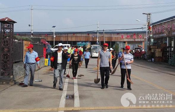 由9名党员组成的志愿服务组与斗南街道干部及殷联社区党员干部一起,进入盆花市场开展“助力创文,千户扫尘”创文攻坚志愿服务活动。对盆花市场卫生清理及300余户商家、市民及游客进行“创文”知识、社会主义核心召价值观及安全生产知识“创文”攻坚宣传。
