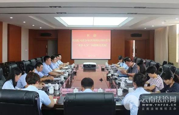 7月27日,省高级人民法院审委会副厅级专委兼司改办主任赵利军,民二庭副庭长、司改办专职副主任高雁及司改办工作人员一行就“案多人少”问题到安宁市法院调研。昆明市中级人民法院副院长孟静、研究室副主任冯丽萍陪同调研,安宁市人民法院班子成员、相关部门负责人及部分员额法官参加调研。