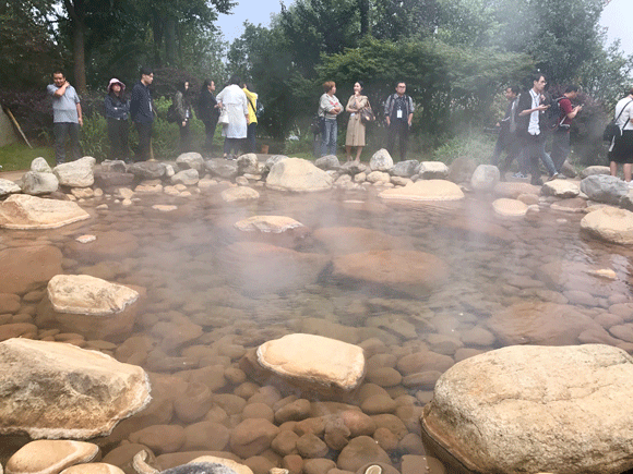 拥有82度地下温泉水的池子蒸汽腾腾