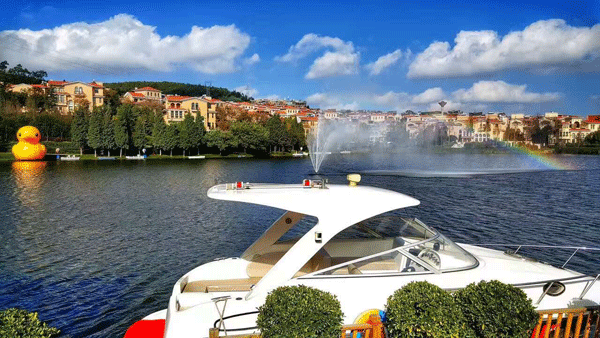 金麟湾花海绿地之间,红风筝飘飞在天空中,欧式风格的建筑错落有致,广阔的高尔夫绿地上的仿真飞机、埃菲尔铁塔、色彩缤纷的大棒棒糖等布置,为婚纱摄影的新人增加了更多可选的景致。高达82℃的温泉汩汩流出,蒸汽缭绕,还要降温之后才可以使用。在温泉体验区,网媒记者们撸起裤管下水,嬉笑间大赞温泉泡脚舒爽,“想留在这儿不走了”。