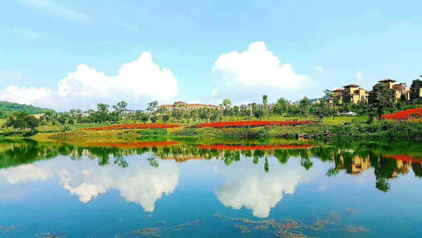 金鳞湾爱情小镇副总经理岳东接受全国网络媒体曲靖行采访团采访时说,金麟湾爱情小镇距离曲靖市中心3公里,是一个以爱情为主题“离尘不离城”的特色小镇,夏无酷暑,冬无严寒,干湿季节分明,年平均气温14.5℃,实地测量负氧离子含量,每立方厘米超过6000个以上。“爱情小镇总规划面积为11600亩,总投资212亿元。,目前小镇已完成投资50亿元,建设规模为4100亩。正在开工建设的二期、三期总投资162亿元。包括千亩花海、温泉酒店、爱情小镇商业街、影视拍摄基地、野外露营基地、万国温泉园、儿童大型水上乐园、山地自行车项目、水中岛国、曲靖美食民俗一条街等项目。