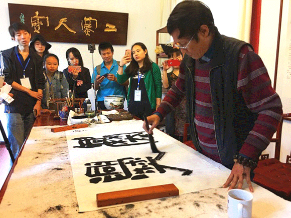 中国爨体第一人陈正义在采访现场写“爨”