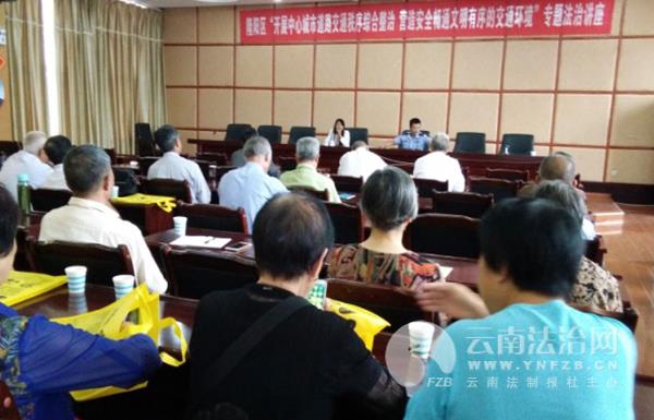 8月25日,保山市隆阳区邀请市公安局隆阳分局交警大队民警为老干部上题为“开展中心城市交通秩序综合整治,营造安全文明有序的交通环境”法治专题讲座。