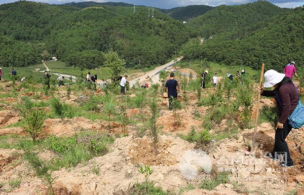 植树现场,干部职工干劲十足,相互协作,相互配合,2人一组,有的挖坑、有的扶树、有的填土、有的浇水,现场热火朝天、一片繁忙景象。为提高树木成活率,州林业局设置4个植树区,安排4名林业技术人员从苗木规格、树坑尺寸、栽植方法、苗木修剪等技术讲解,确保栽一片、活一片、绿一片。当天共栽植树木800余株,为文山城市面山绿化再添新绿。