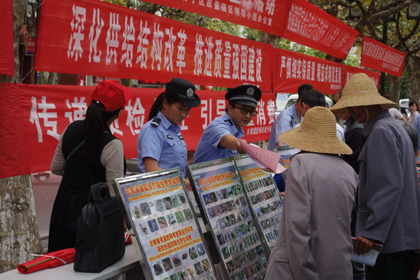 919下午,晋宁区在昆阳街道办事处郑和文化广场举行2017年“科普”及“质量日”现场活动。为普及森林及野生动物保护知识,宣传野生动物保护法律法规,进一步提高全社会保护森林和野生动物资源的意识,增强群众的法制意识和守法自觉性。晋宁区森林公安局以此次活动为契机,联合区野保办、区湿地办及区防火办组织开展了涉林法律法规宣传活动。