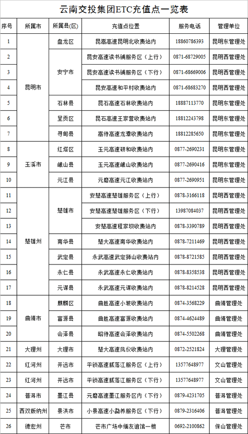 云南交投集团对所属高速公路,节前已加大道路病害处置,小病害将在节前处置完毕,原则上节日期间将暂停高速公路养护作业,所有施工点于9月28日13:00前撤离现场,暂停施工。但自然灾害应急抢险工程除外,货车在通过自然灾害应急抢险路段时,要服从管制,有序通行。同时,各收费站还将结合车流量、道路通行变化等情况,合理利用车道和复式收费模式,及时或有预见性的启动疏堵应急预案。