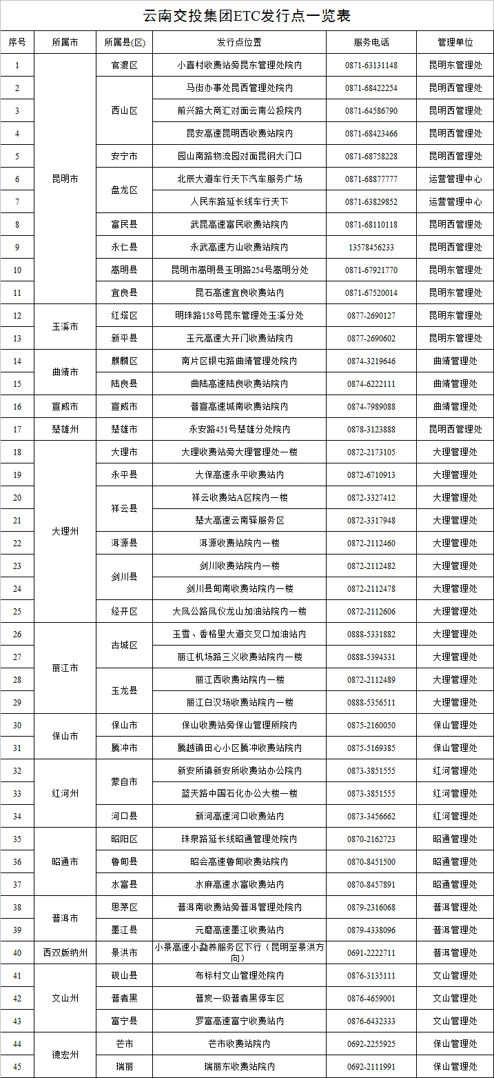 据云南交投集团相关负责人介绍,国庆中秋假日期间,云南省收费公路将继续执行小客车(7座及7座以下)重大节日免费通行政策,免费时段为:2017年10月1日00:00至10月8日24:00,免费时间以收费站出口时间为准。根据省交通运输厅文件精神,自2017年10月1日起至2019年9月30日,云南交投集团对持有ETC云通卡通行我省高速公路的货车用户,实施通行费优惠20%的政策,从2017年10月1日00:00起执行,以车辆驶离高速公路出口收费车道时间为准。云南交投集团所属公路收费站将按照规定设置国庆中秋假日期间小型客车免费通行标志和分流标志,引导车辆提前分流。