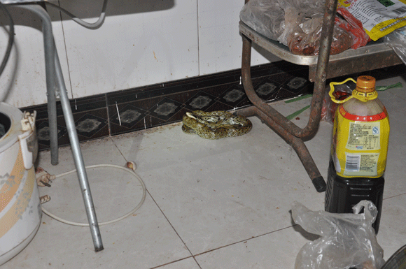 接报后,晋宁区局值班民警立即赶往报警地点。在报警人张某花的指引下,民警在其家中找到了其所说的蛇,后民警将蛇捕获并对报警人房子周边进行安全排患后将蛇带离。