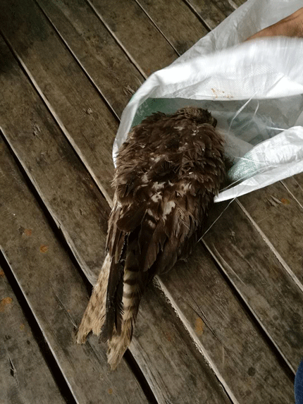 20171015日下午1405分,呈贡区森林公安局民警接到市局110指挥中心报警称:在呈贡黄马高速、呈贡北收费站处有人捡到了一只受伤的鸟,请前往处理。