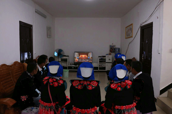 10月18日上午8点半,河口县瑶山乡水槽村顶坪小组邓金莲家就坐满了人,因为她家里刚刚买了液晶电视,大家就相约聚到这里,等待十九大开幕会这个重要时刻的到来。上午九时,党的十九大隆重召开,大家认真观看开幕式盛况,聆听习近平总书记所作的工作报告。
