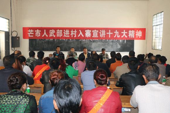 为贯彻学习领会好十九大报告精神,让少数民族地区同样感受到十九大的精神骨髓。113日,芒市人武部组成十九大报告宣讲团,对脱贫攻坚挂钩村宣讲十九大报告精神,宣讲主要采取重点解读、要点剖析等方式进行,讲述十八大以来国家体制以及部队改革带来的历史性变革,以通俗的语言,鲜活的事例剖析近5年以来的经济、政治、文化、社会、生态等领域发生的巨大变化。