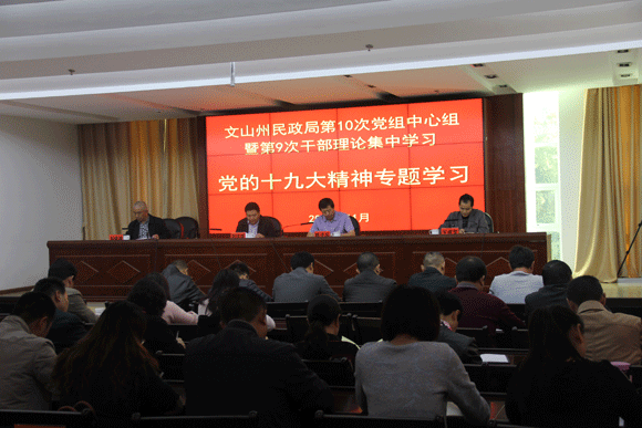 11月13日,州民政局举行第10次党组理论学习中心组暨第9次在职干部理论集中学习开展党的十九大精神专题教育。要求全面学习准确领会党的十九大精神,迅速掀起学习贯彻党的十九大精神热潮。