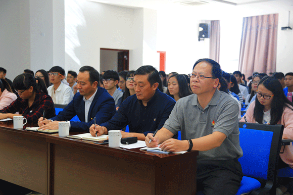 郝校长指出,张局长对国家地缘战略、两岸关系和对台政策研究透彻,使广大师生从中获益良多。郝校长要求,全校师生要把学习宣传贯彻党的十九大精神作为首要政治任务,以学习好、宣传好、贯彻好习近平新时代中国特色社会主义思想为主线,在全校持续做好学习宣传贯彻十九大精神工作。