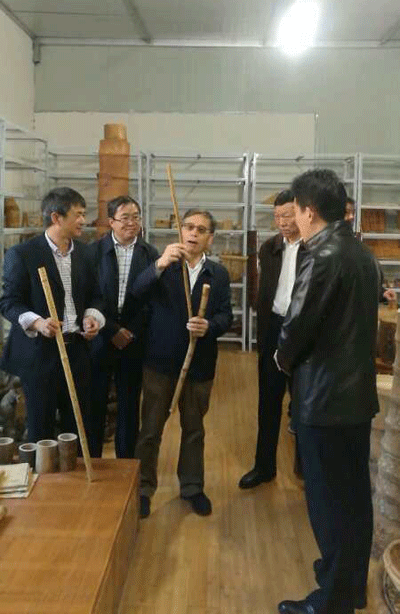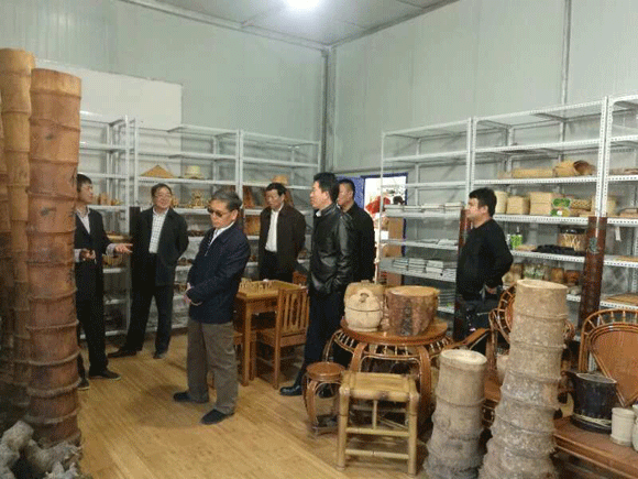 丁副主席、杨市长、汪副院长、嵩明县四大班子领导在珍竹公司竹产品展览室考察