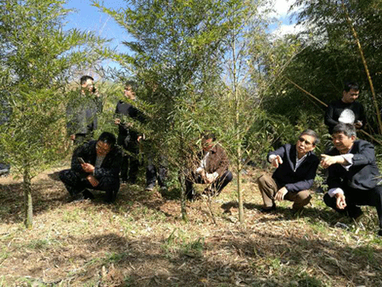 2017年11月19日,省政协副主席(原副省长)丁绍祥,普洱市市长杨照辉,省农科院副院长汪占毅,嵩明县委、人大、政府、政协等领导一行20余人,赴云南珍竹农业科技有限公司嵩明县竹子科技园,全面考察了竹子组培实验室、竹种园、苗圃、竹产品展览馆、国际交流室、竹楼等,对珍竹科技公司的工作给予了充分肯定,并对今后的工作提出了要求、期望。特别对“以竹代桉”工作作了重要指示。