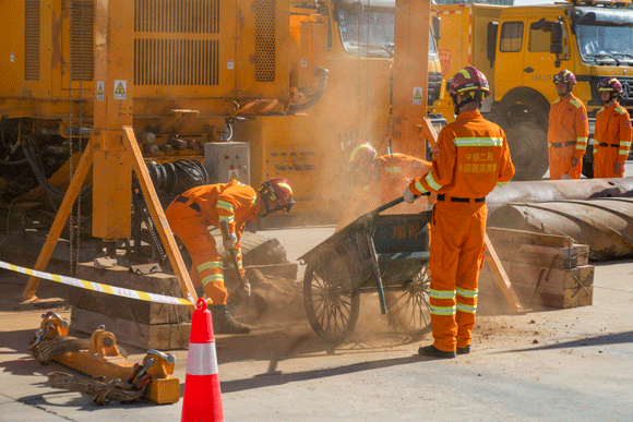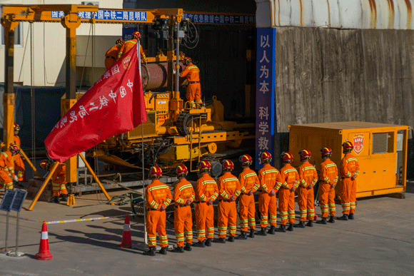 12月14日,中央企业隧道施工坍塌应急救援演练在国家应急救援中国中铁二局昆明队基地隆重上演。来自中国建筑、中国中铁,中国铁建、中交集团、中国电建、中国能建等6家中央企业分管单位救援业务的领导、专家、技术骨干55人出席演练现场,并观看了由演练承办单位国家应急救援中国中铁二局昆明队组织的隧道施工坍塌应急救援模拟演练。