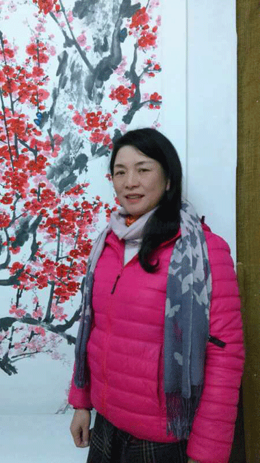 她自幼爱好美术,2002年从事花鸟写意国画创作至今,她擅长写意梅花,每年在黑龙潭梅花盛开季节都要去采风写生,收集有价值的素材作为创作新作而准备,因而她笔下的梅花、牡丹鲜活富有生气,尤其是梅花,如雪梅,紫悔,红梅等等,构图不同,用笔各异,梅竿以草书的中锋行笔用墨,其形或似盘龙,或如卧虬上下旋转,迂回变化,笔墨间有金石之气,树干苍劲,构图劲拔,表现了梅花的坚强性格,其梅瓣清淡秀雅,冷香四益,节律自然,疏影横斜,虚实相宜,表现了梅的映雪傲骨的精气神,同时也表现了画家自己的恬淡高雅气质。她的作品深受人们喜爱,常有省内外的藏家求购收藏,还有美国、加拿大、澳州、新加坡等一四十多个国家的国际友人慕名前来求购。
