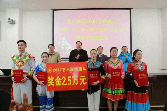 2017年,文山学院学生参加各级竞(比)赛硕果累累,先后荣获“全国数学建模比赛一等奖”、“全国铁路春运‘暖冬行动’优秀志愿者”、“云南省第五届大学生艺术展演朗诵组一等奖”、“文山州第十届民运会高脚竞速男女混合4×100第一名”的18个团队,施金仙等同学获得了学校优秀团队和优秀个人荣誉。
