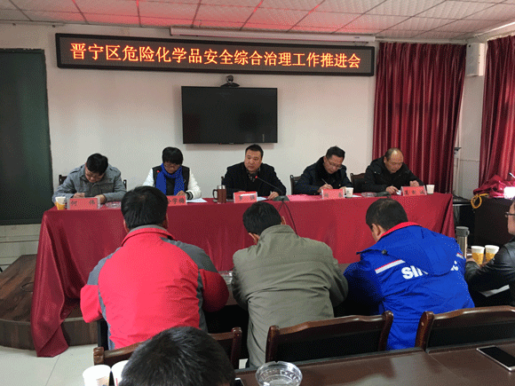 按晋宁区政府关于进一步加强安全工作的通知要求,结合晋宁区危险化学品安全综合治理工作开展情况,1月11日,晋宁区安委办组织全区8个乡(镇)街道、区运管分局、区公安分局、区环保局、区安监局和84家危险化学品生产、经营企业共60余人在晋宁区安监局召开危险化学品安全综合治理工作推进会,及时安排部署晋宁区2018年危险化学品安全综合治理工作任务。