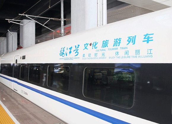 2016年12月28日,承载着云岭高原的期盼,沪昆高铁云南段、云桂铁路昆明至百色段正式开通运营,七彩云南迎来了高铁时代。高铁开通带来的“时空压缩效应”给云南旅游、丽江旅游带来新的爆发力。为了共享高铁带来的经济社会快速发展红利,丽江旅游以积极的姿态拥抱高铁时代,2017年1月6日,丽江对昆明至北京高铁列车冠名为“丽江号”京昆高铁文化旅游列车,提升了丽江旅游的宣传效果和品牌影响力,为丽江旅游营销翻开了崭新的一页。一年后,“丽江号”文化旅游列车再启程,将打造丽江旅游文化“移动长廊”,更好地向往返于昆明—北京及沿线各站点间的旅客展示和推广丽江丰富的民族文化和旅游资源产品,让丽江与各个旅游客源地、目的地之间实现资源互通,更好地把丽江旅游资源、旅游产品推向全国。