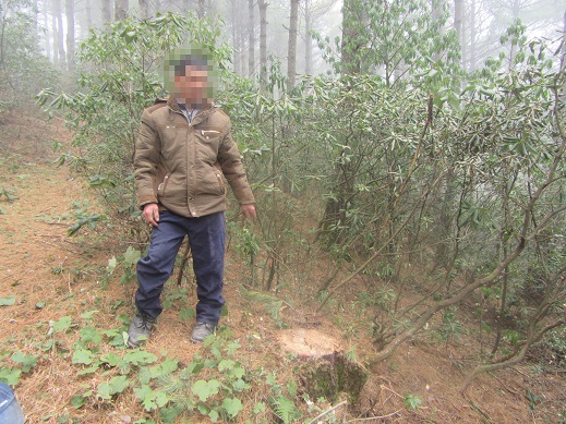 20171228日,巧家县森林公安局跃进派出所民警接到匿名电话报警:巧家县马树镇小河塘村大白路国有林内有人砍树,用一辆白色集装箱的小货车运输,请出警调查。我所民警接到报警后及时出警赶往现场。经查:巧家县老店镇治乐村王家村社村民王某某于当日在大白路砍伐了4株华山松。经鉴定:原木材积为0.2898立方米。