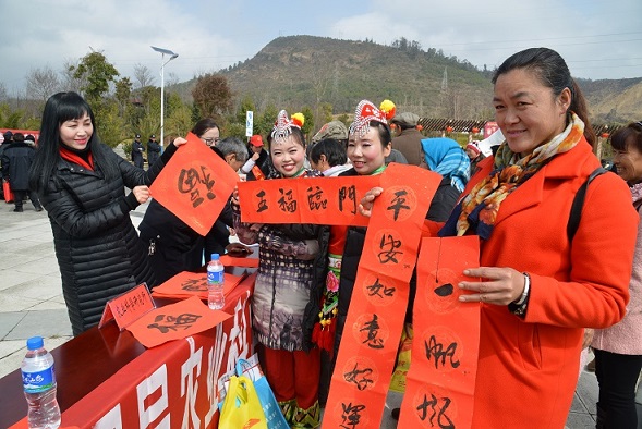 唱花灯、写春联、问政策、领历书...2月6日,昆明市晋宁区2018年“我们的节日•春节”主题活动暨文化科技卫生法律“四下乡”活动启动仪式在二街镇生态广场热闹开锣,丰富多彩的活动吸引了周边居民和村民前来参加。