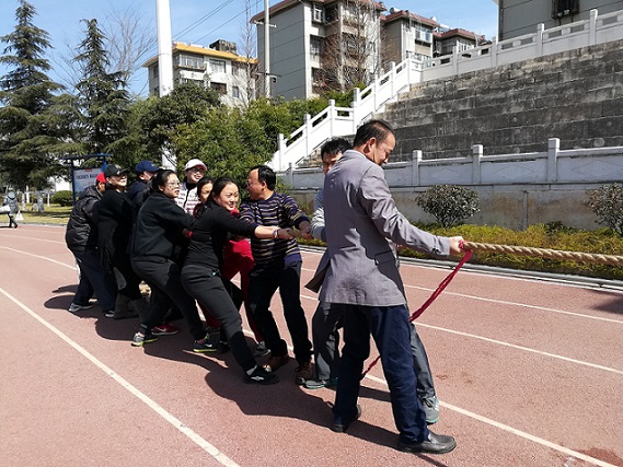 2018211日下午,晋宁区卫计局机关“迎新春”职工趣味运动会在郑和文化广场举行,卫计局机关30余名运动员参加比赛。此次运动会共分为集体项目9个和个人项目3个。虽然冬未春初季节寒气依然袭人,但丝毫抵挡不住运动场上运动员们的高涨热情。大家兴致盎然,提前到达比赛场地,兴致勃勃练习各个项目,认真进行赛前热身,讨论各项目的比赛技巧。趣味运动会进行“拔河比赛”、“抢收抢种”、“心心相印”、“投篮比赛”、“袋鼠接力赛”、“三人四脚接力赛”等八个集体项目和“跳绳比赛”、“夹玻璃珠”、“踩气球”三个个人项目的角逐。比赛妙趣横生,参赛队员精神抖擞,士气高昂,场面十分热闹。