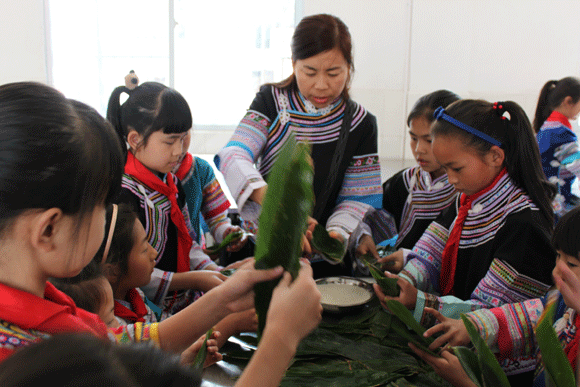 近年来,长底布依族乡中心完小以建设青与蓝品质与艺术的特色学校办学目标,以“义务教育均衡发展”为职责,着力从教师队伍建设、教育教学质量提高、义务教育关爱、标准化建设、特色文化活动入手,全面提升办学质量,全力推进义务教育全面、均断持续的发展。 近年来,长底布依族乡中心完小以多种形式探索布依稻耕文化,并逐渐引入校园,在布依传统节日中,用包粽子的活动形式向学校师生传递布依稻耕文化力量。