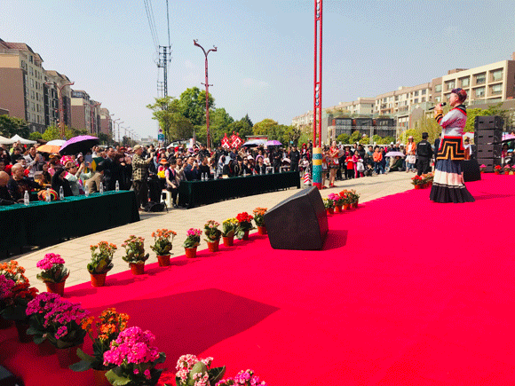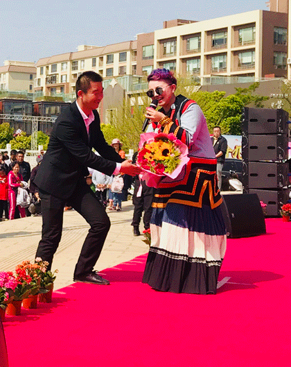 开幕式現场,嘉宾纷纷上台向正在深情演唱的张家茜献花合影留念