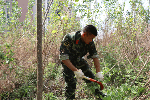 “咱当兵的人有啥不一样!”在安晋高速桥下至安居家园门口和安居家园门口至永乐大街南口的道路旁,杂草丛生,平均高度都超过了正常人的身高,边防子弟兵和区武装部的干部职工们,不仅要忍受灰尘漫天,还要顶着炎炎烈日,只为能在创建第二家园的美化中出一份力!