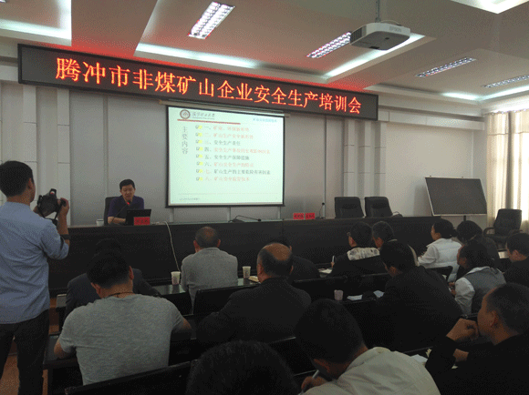 4月28日,腾冲市组织召开第一季度安全生产形势分析及非煤矿山企业安全生产业务知识培训会议。