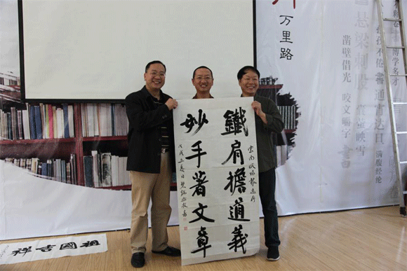 5月5日下午,由云南政协报社主办,主题为“翰墨传欧美——樊端然书法艺术分享会”的第九场彩云读书会在云南政协报会议室成功举行。中国著名旅美书法家、美国杨伯翰大学中国书法教授樊端然先生,以一颗拳拳爱国之心、深深华夏之情,立足中国源远流长、震古烁今的书法艺术,着眼世界文化的背景,从文化、历史、时代、传承等多个角度和维度,分享了中国书法艺术所涵纳的人文情怀,以及他的书法创作心得及教学体会。参加彩云读书会的有相关退休老领导,中央民族大学法学院院长徐中起、云南人民出版社原社长、当代作家胡廷武、云南省文史馆原副馆长苏建华、英茂集团总裁李锦泉、樊端然的大学同学徐中起、樊建、钱丙申、全国政协委员崇化、云南省红十字会专职副会长潘晓玲、回族女高音歌唱家杨慈等嘉宾及书画爱好者、书画收藏者、各企业家。国家、省级电视、《云南政协报》、《云南法制报》等媒体、新华网、中新网、云南法制经济网、腾讯新闻云南法制经济网、天天快报云南法制经济网等网络媒体。会场充满着浓厚的文化艺术氛围,时而热烈鼓掌,时而幽静聆听,演讲激情澎湃,达到文化艺术的情感升华。现场书写使会场气氛到达了高潮,争看樊教授的书法表演。本场读书会的成功举办,有助于增进大众对书法文化艺术的了解,有助于国人对中国书法艺术在欧美教学传播现状的了解。将进一步增强我们的文化自信,自觉践行中华民族优秀传统文化的学习、研究与传播!