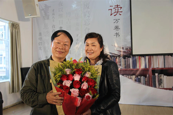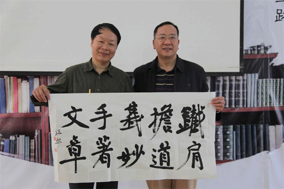 谈起对书法艺术的理念,樊端然教授首先向大家介绍了古人对书法的研究以及古人对书法的定义,然后谈到自己对书法的看法和多年来创作书法的体会和感悟。樊端然教授精彩的分析和独到的见解,赢得现场听众们的热烈掌声。