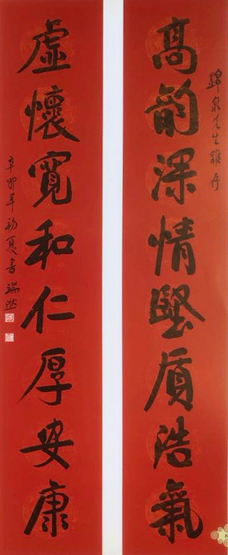 樊端然的书法个性,具有强烈的创新倾向,他笔下的汉字,不经意间就会呈现出常规之外的形态;字幅的行款布局、节奏韵律,也往往呈现自家匠心。尽管这种呈现会是一个有争议的话题,尽管这种呈现,具体到某一点的得失上会言人人殊,但我相信欣赏者注重的只是美的事实。