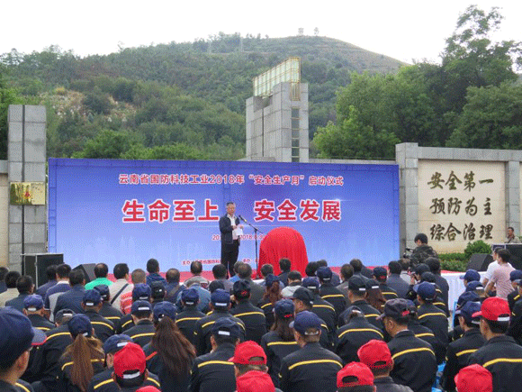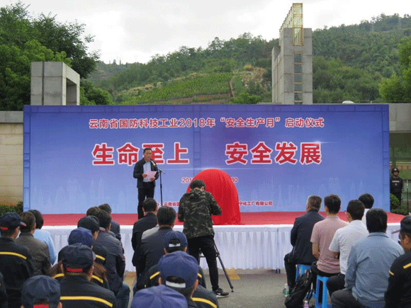 5月30日上午,云南省国防科技工业2018年“安全生产月”启动仪式在云南安宁化工厂有限公司举行。云南省安全生产监督管理局、属地安全生产监督管理与工业和信息化部门以及军工和民爆生产企业的有关领导、职工代表共200余人参加。
