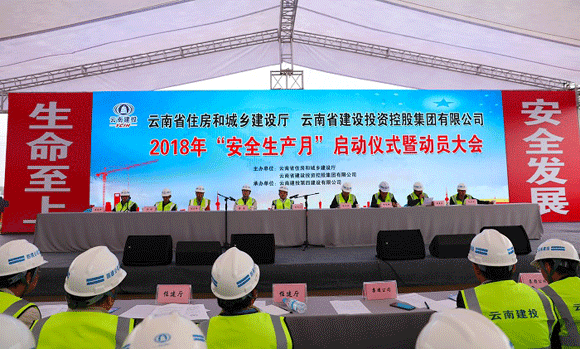 5月29日上午,云南省住房和城乡建设厅及集团2018年“安全生产月”活动在四公司云玺城市花园A1地块三期项目启动,省住建厅副厅长蔡葵,省住建厅质安处副处长楚灵伟,集团公司党委书记、董事长陈文山,工会主席陈文双,副总经理李振雄出席了启动仪式。