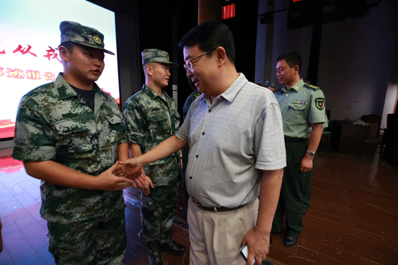 为进一步激发广大适龄青年大学生参军报国的热情,积极响应祖国号召,携笔从戎报效国家,6月7日下午,文山学院在艺馨楼报告厅举办了主题为“好男儿志在四方 携笔从戎光荣”的退伍复学优秀士兵事迹报告会。文山军分区副司令员尹晓武、动员处处长李保红,文山市武装部政委李树卫,三鑫职业技术学院副校长李庆红,文山学院党委书记熊荣元、党委副书记张晓憬、副校长吕昌会出席报告会。文山学院退伍复学士兵赵艳琴、刘祖涛、王履茂、世家显、段雪娟、朱树斌、冯明威、王金秀、杨琳鹏、张洁、李凯林,师生代表共计500余人参会。报告会由雷丽教授主持。