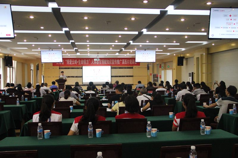 为进一步推进我省人体器官捐献工作健康有序发展,2018年6月22日,以“博爱云岭 生命接力”为主题的云南省人体器官捐献知识宣传推广培训班在德宏瑞丽举办。本次培训由云南省红十字会、云南省卫生和计划生育委员会主办,云南省第一人民医院、昆明市延安医院和德宏州红十字会承办。来自德宏州、保山市及所辖县(市、区)红十字会、卫计委(局)分管领导,德宏州、保山市及所辖县(市、区)人民医院领导、业务科室专家等130余人参加培训。中国人体器官捐献管理中心副主任侯峰忠,云南省红十字会副会长潘晓玲,云南省卫生和计划生育委员会医政医管处副调研员唐明波,昆明市延安医院副院长谷欣等参加开班仪式。
