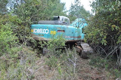 接报后,晋宁区森林公安局立即出警调查,在二街镇响水村委会“锅底箐”坡头处发现有一条用机械新推出来的宽约6-8米,长约1300米的道路,在距该路东北侧约200米处的树林内停放有一台挖掘机,现场无人。经民警蹲点守候,于4月8日15时许现场抓获来开挖掘机的邹某员(男,25岁,家住:昆明市西山区团结镇永靖村委会杨柳河村),查获案件,依法扣押挖掘机1台。