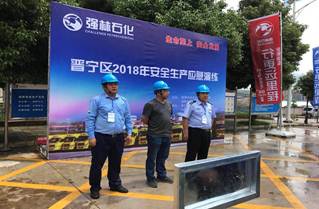 此次演练模拟晋宁区某油库发油平台发生火灾事故为情景。事故发生后,企业先行处置后,请求晋宁区政府支援,晋宁区政府接报后立即启动《晋宁区生产安全应急救援预案》,成立现场指挥部,组织战斗组、安全警戒组、医疗救护组、通信联络组,抢险善后组、后勤保障组各负其责,扑灭明火、围堵泄漏油品、回收余油、疏导交通、救护人员、疏散群众。仅用了18分钟快速、有效完成事故处置任务,此次演练反应快速、指挥有方、协作有力、救援有效、疏散有序,达到预期目的。此次应急演练晋宁区卫生计生局组织医务人员8人,救护车一辆,携带相关急救药品器诫参加演练,区政府、区安监局、区公安分局、区卫计局、属地政府、企业共100余人参加演练。通过演练,使晋宁区各部门及企业工作人员进一步熟悉了危险化学品事故应急救援预案,检验了各部门协同配合能力,锻炼了全区救援队伍的应急处置能力,为实战工作积累了经验。