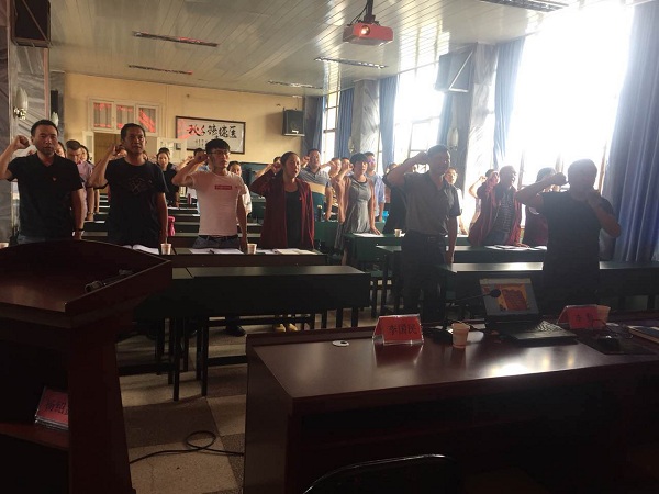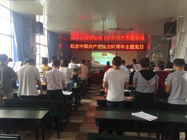 在会上大家首先首先起立,一起奏唱国歌,庄严雄伟的歌声在整个会场回荡。接下来区卫计局党委李勤书记亲自带领大家举起右手面对党旗再次庄严宣誓:“我志愿加入中国共产党,拥护党有纲领,遵守党的章程….” 同志们再次以饱满、昂仰的激情重温了入党誓词。随后宋宏伟书记带领大家一起齐声朗读了《中国共产党章程》节选。大会由宣传委员李国华同志宣读了“2017年优秀党员表彰的决定”,对2017年度思想、工作各方面表现优秀的18名党员同志给以表彰,倡导党员同志立足岗位出成绩,创先争优讲奉献。