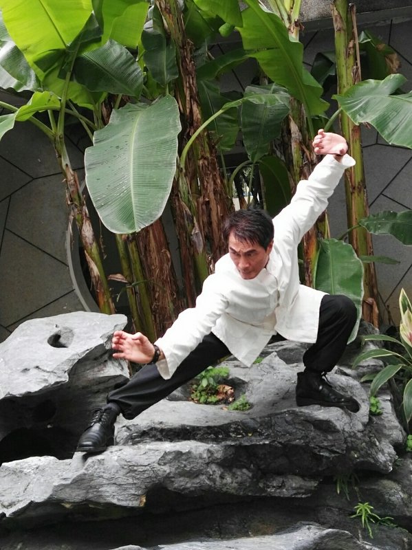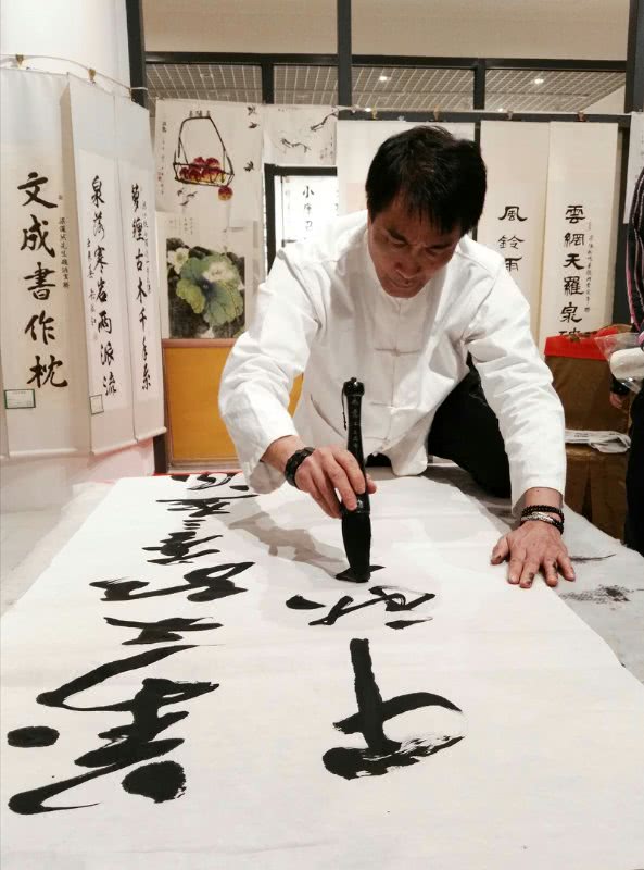 他运用武术拳势中起伏、行势、运气、使转、腾挪等风格,结合书写的内容,创作出一种极具动感、别开生面的功夫书法。