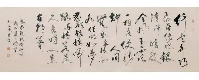 他的书风渗入了武术的形和意。时而像太极拳,刚柔相济、秀美清丽;时而像咏春拳,短打寸劲、铁划银钩;时而像侠家拳,劲强刚猛、笔势雄烈。