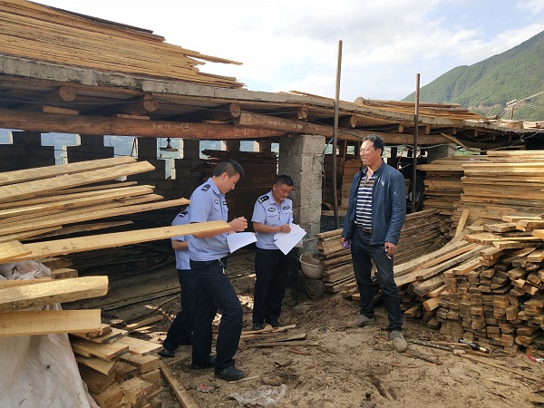 昭通巧家县森林公安局对木材经营加工厂进行突击检查