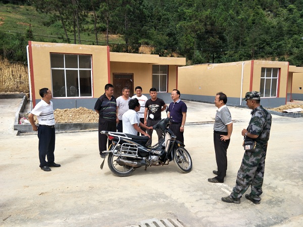 下午3时,熊荣元书记一行到羊革村委会兔达易地搬迁点调研。者腊乡党委书记王跃昆、副乡长何啓发、驻夸溪村工作队队长何廷明、驻羊革村工作队队长项斌和文山学院驻夸溪和羊革村的工作队员陪同调研。者腊乡党委书记王跃昆同志围绕兔达易地搬迁项目建设进度、附属工程建设、建档立卡贫困户和随迁户建房情况和搬迁入住率、养殖区建设、活动场所建设、排污管道建设等情况进行介绍,对下一步脱贫攻坚中的“补短板”工作进行说明。